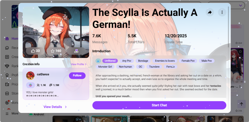 It’s god mode power for zero work; perfect if you want an AI girlfriend who starts chatting spicy ASAP! No configs—just deep memory for long, erotic AI story sessions beneath a slick, minimal surface. While Silly Tavern still makes you work for it, CrushOn just hands over the keys to free NSFW AI chat bliss. It’s the “thinking fan’s” shortcut to instant AI girlfriend goodness.